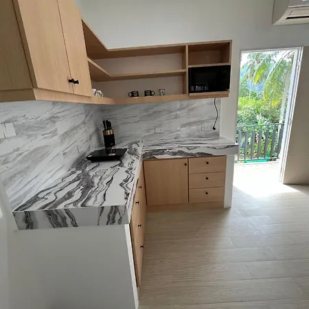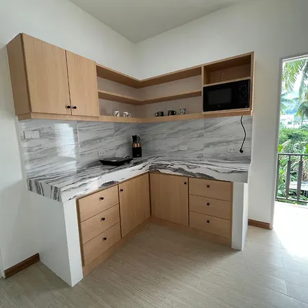 このアパート内の台所で、お好みの食事を快適に調理できます。 宿泊施設から歩いてたった10分ほどのSmart バス停からバスに乗って、プーケットの他の地域を探索することもできます。
